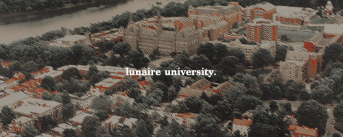 Lunaire University, located in Lunaire, Minnesota, is different from other colleges. While most of it is like any other school, there is one key difference: the majority of the student body consists of supernatural creatures. The founder and its family were werewolves, the Dean and most of the faculty are witches (along with the Omega Beta Zeta sorority), campus security and the town cops are hunters, and the students can be anything from a human to a banshee. While there are some humans that attend, they're (mostly) kept in the dark about what truly lurks in the dark on campus. Not to mention the shadowy, secret society called the Order of Birthgrave. In its CANON VERSE, the Dean was recently murdered in her office, found next to the words 'DEATH TO WITCHES' in blood next to her body. In its SECONDARY, NORMAL VERSE, Lunaire University is a regular college with no supernatural elements, and often used as a placeholder when a college is to be mentioned in other non-verse threads.